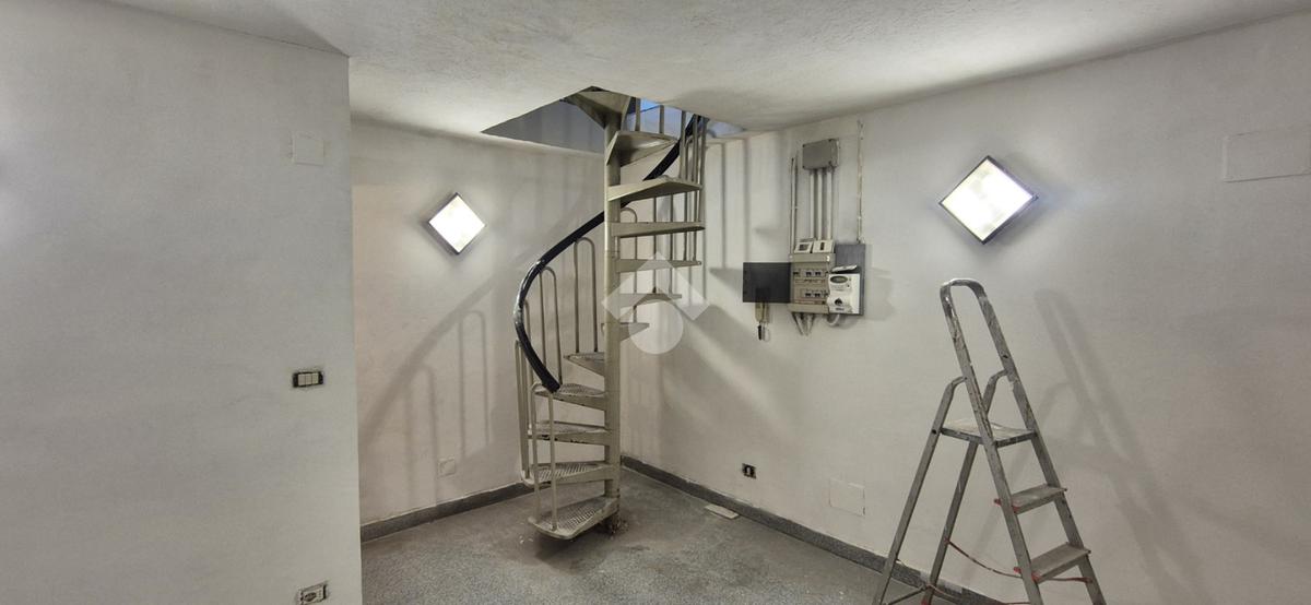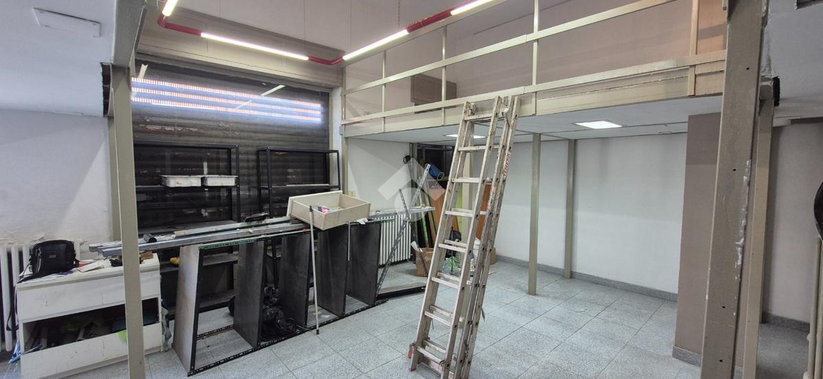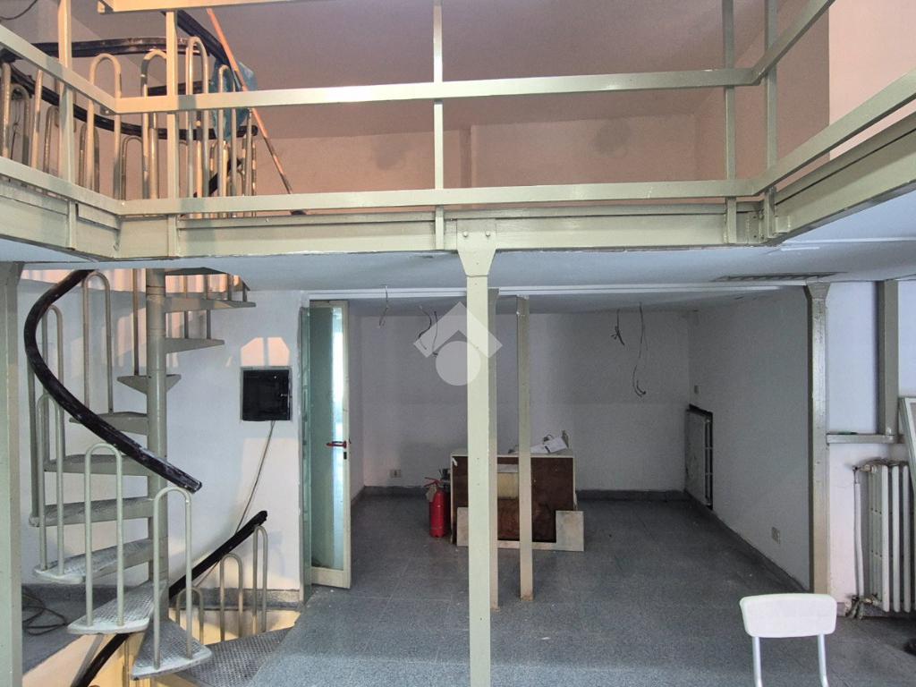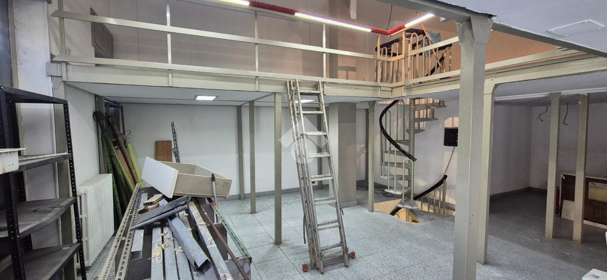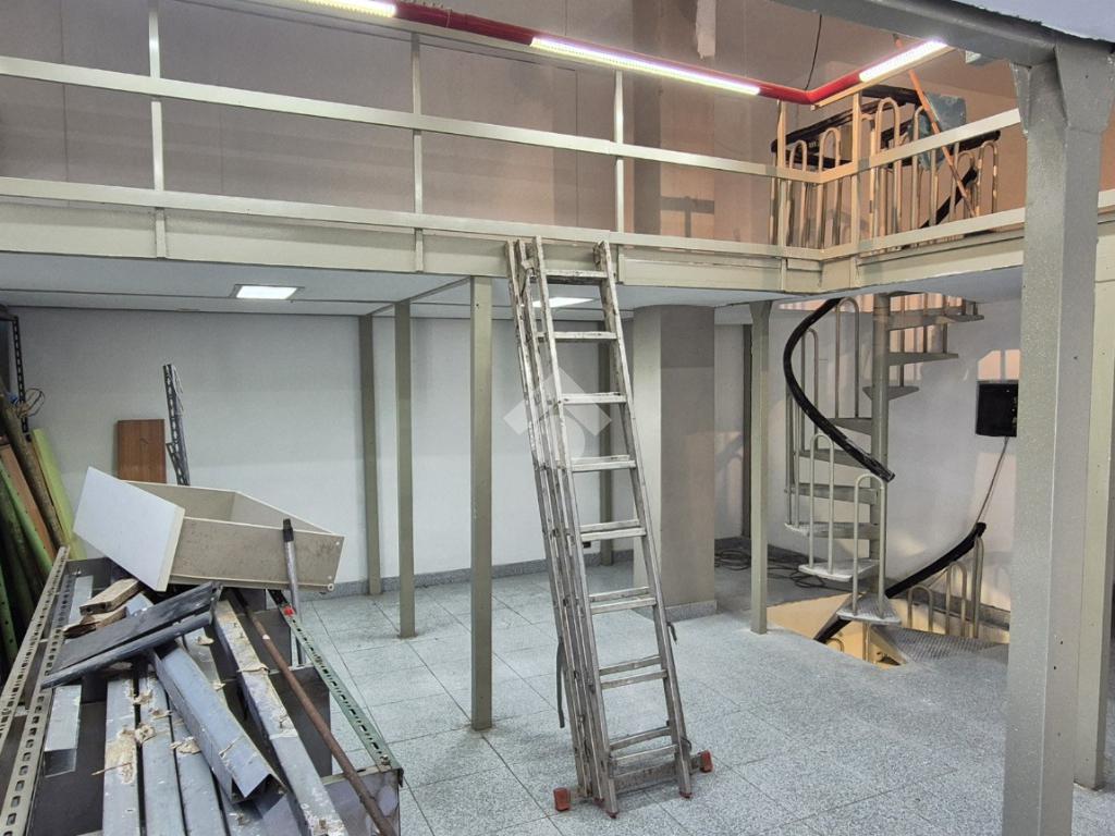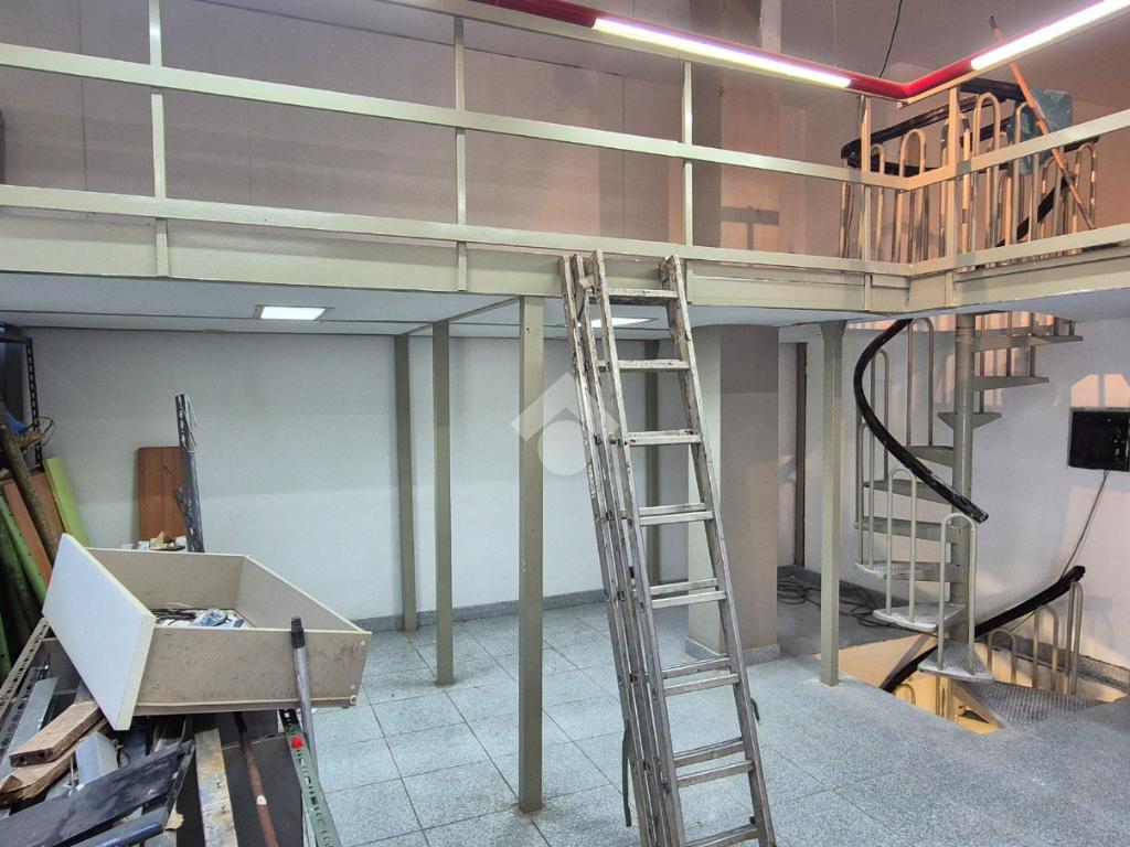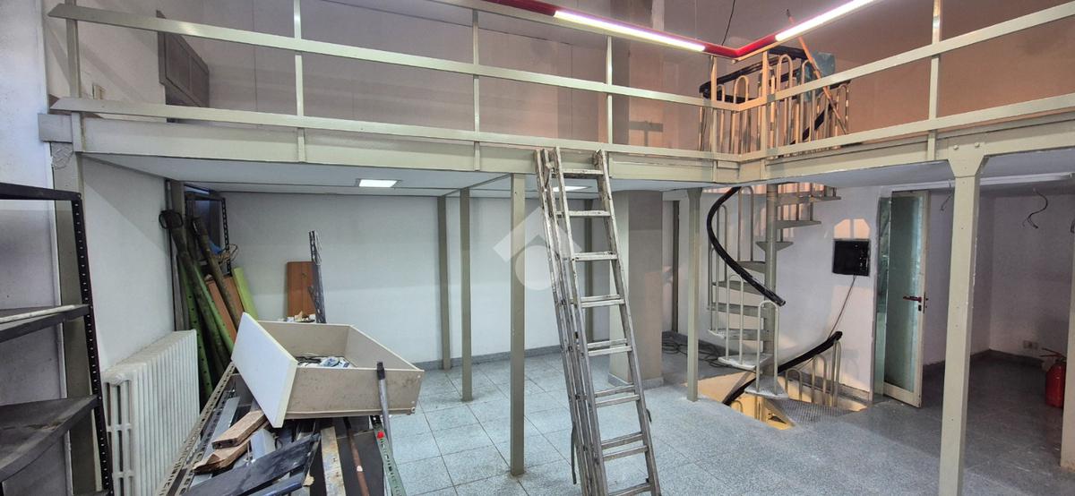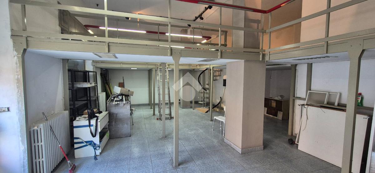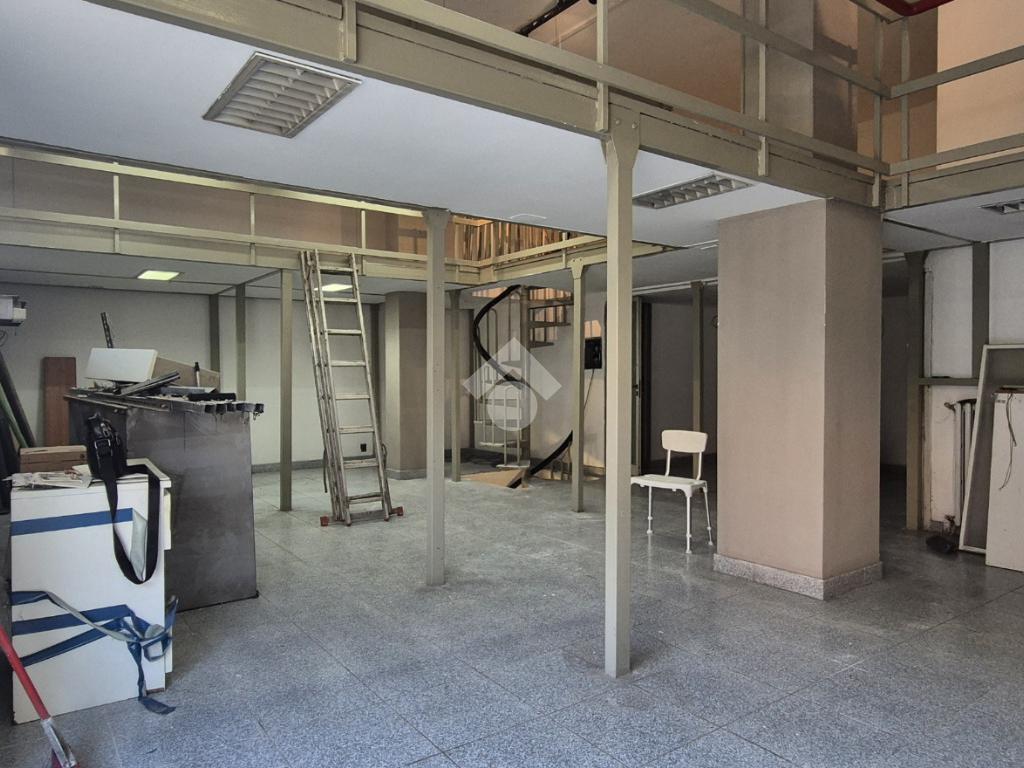 Al piano strada, con una superficie di mq 105, si trova l'ampia zona commerciale con il servizio igienico interno. Tramite scala a chiocciola si raggiungono la zona soppalcata di mq 70 e il magazzino seminterrato di mq 105.