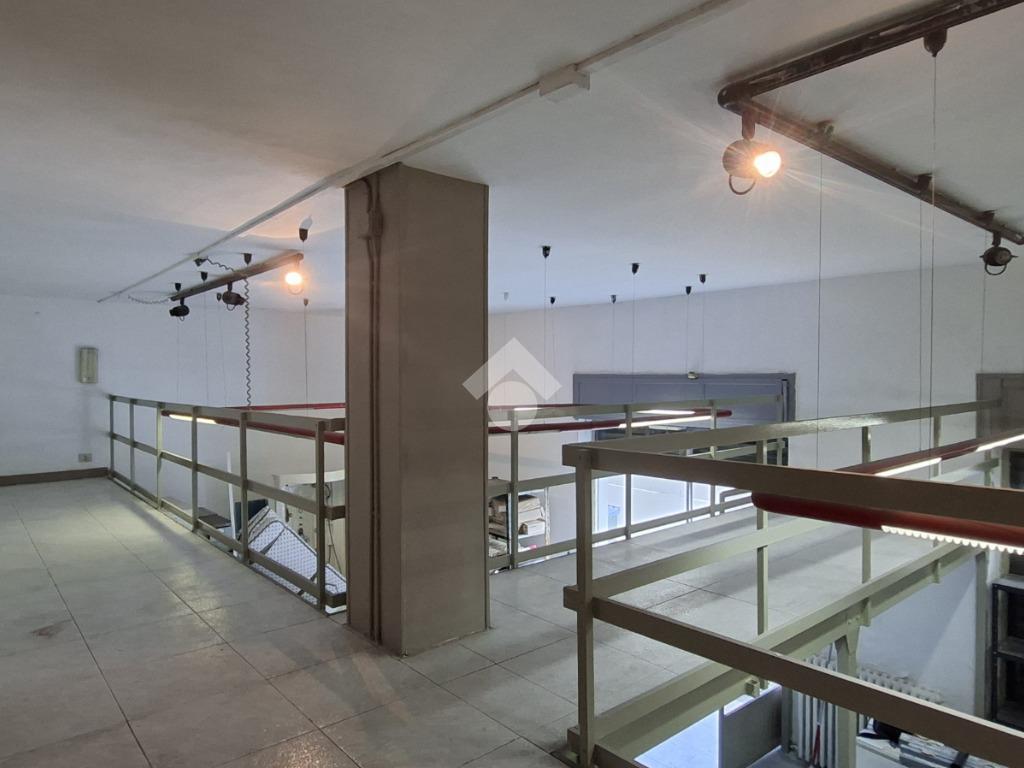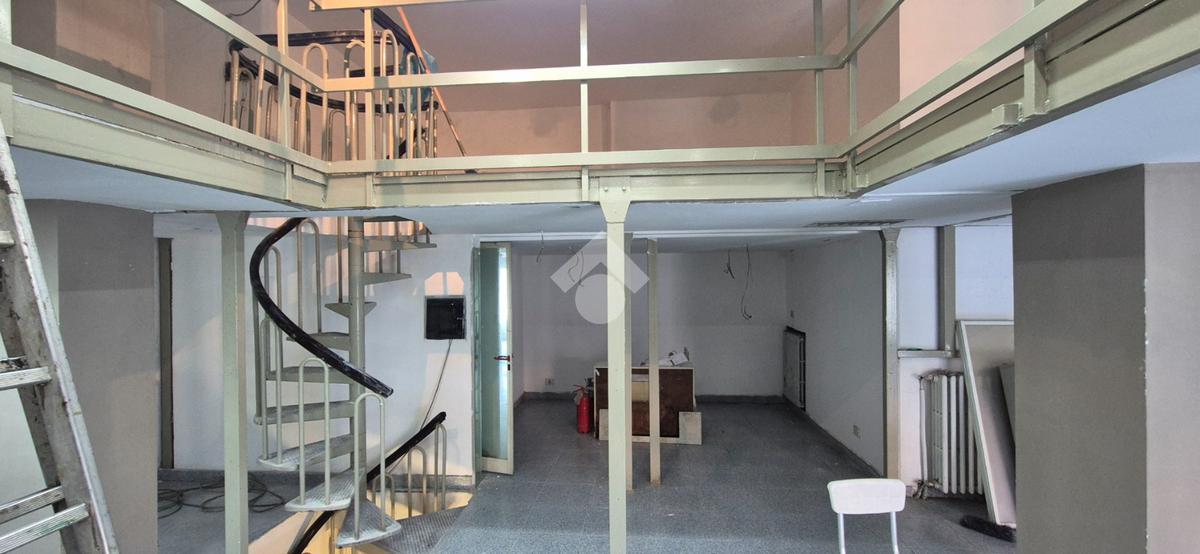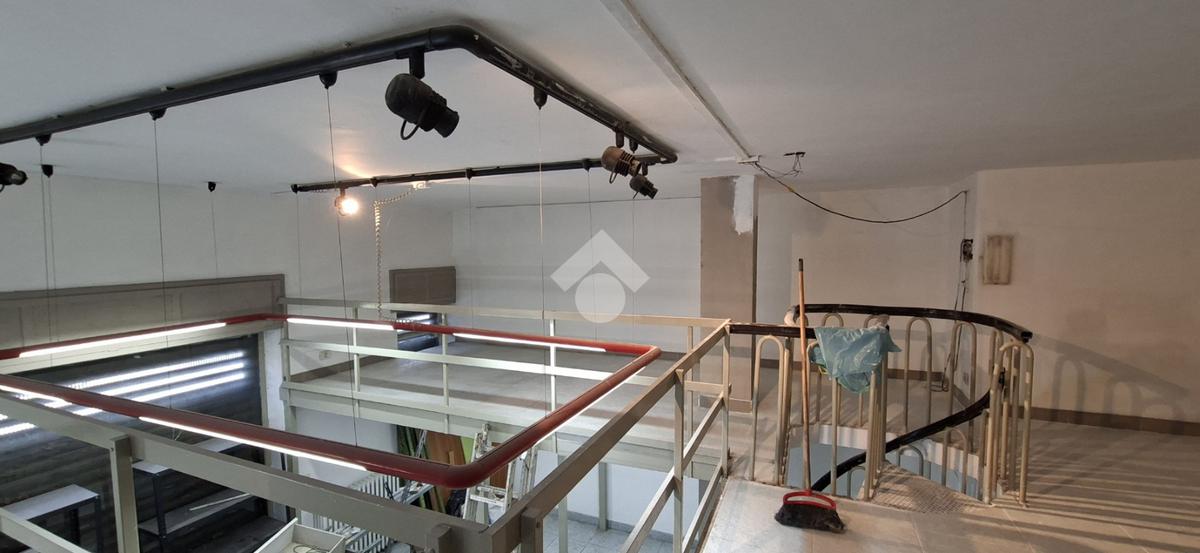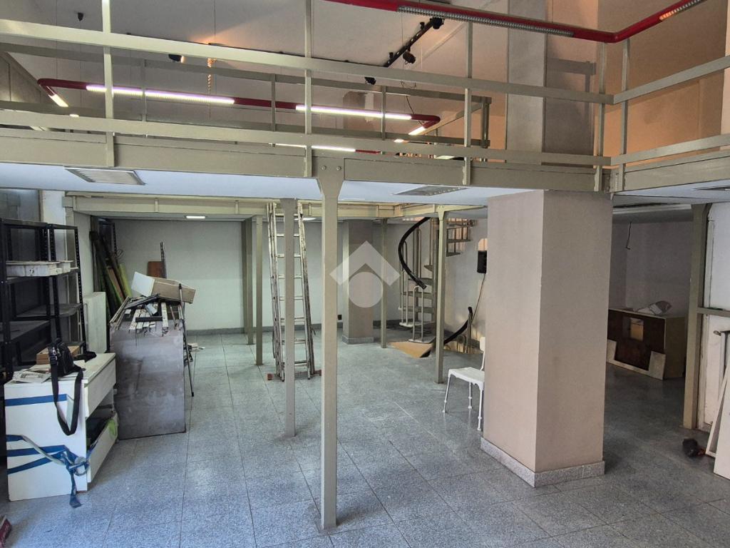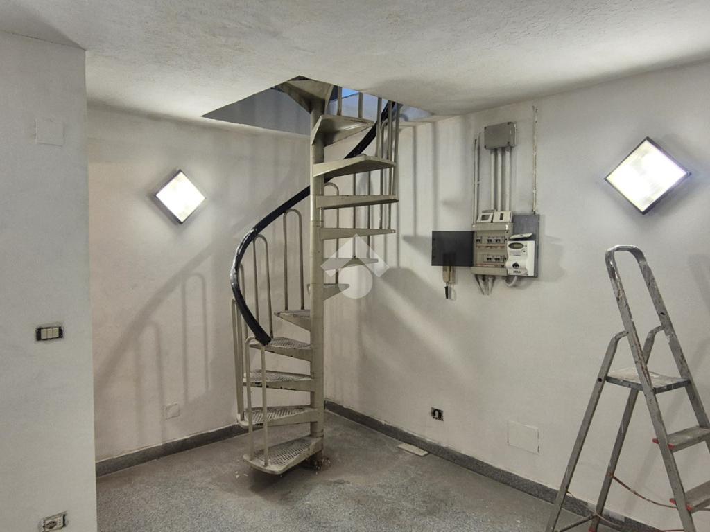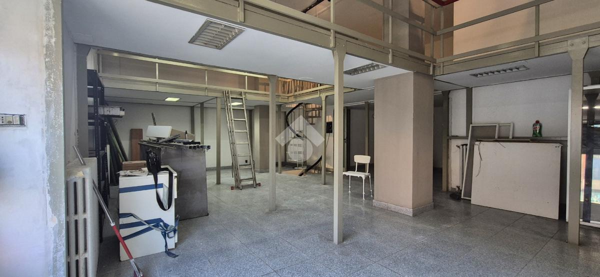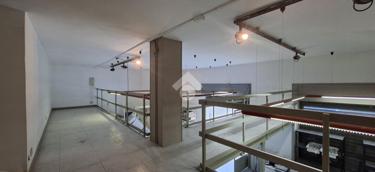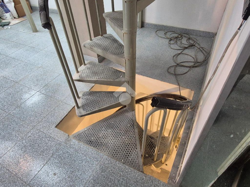 Al piano strada, con una superficie di mq 105, si trova l'ampia zona commerciale con il servizio igienico interno. Tramite scala a chiocciola si raggiungono la zona soppalcata di mq 70 e il magazzino seminterrato di mq 105.