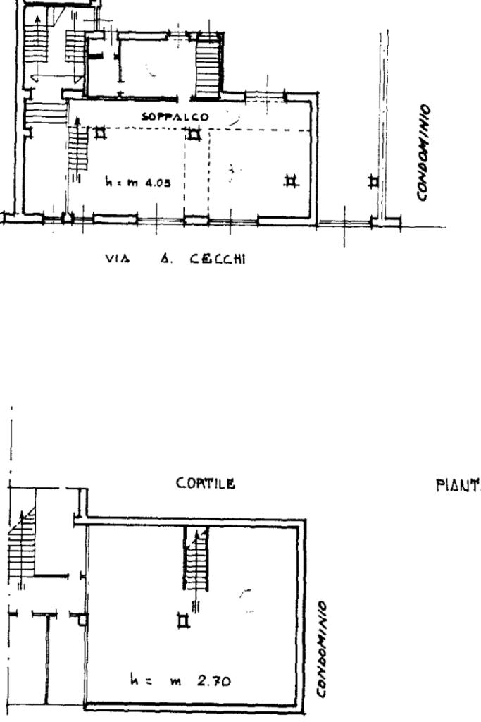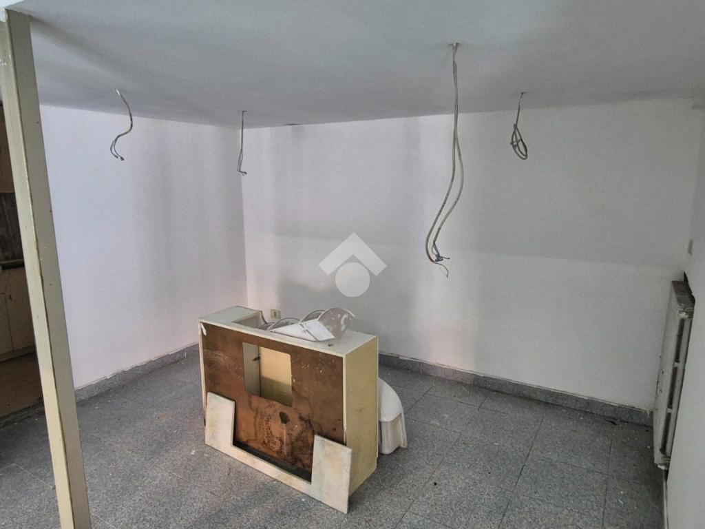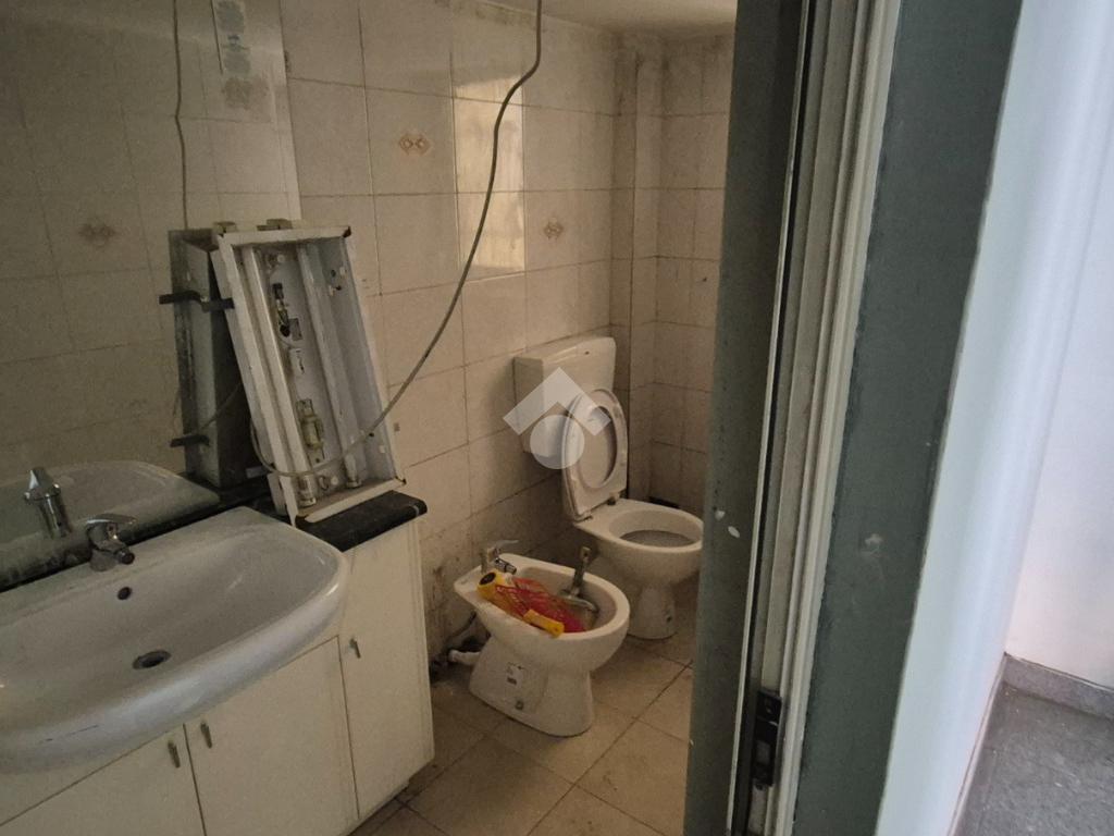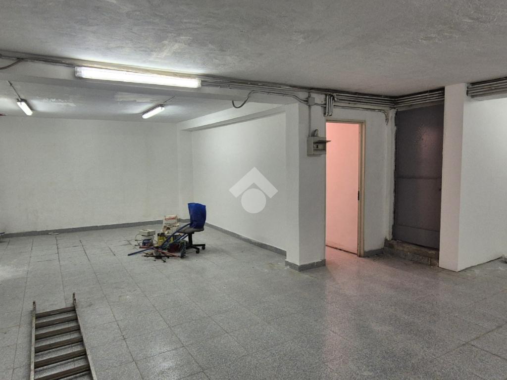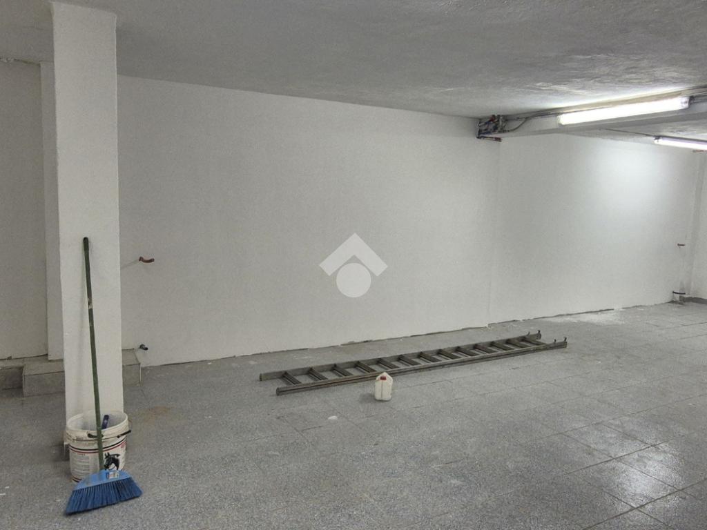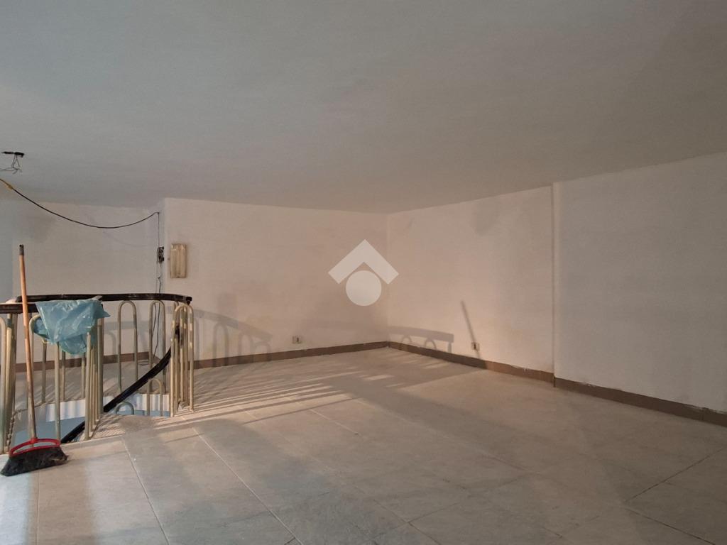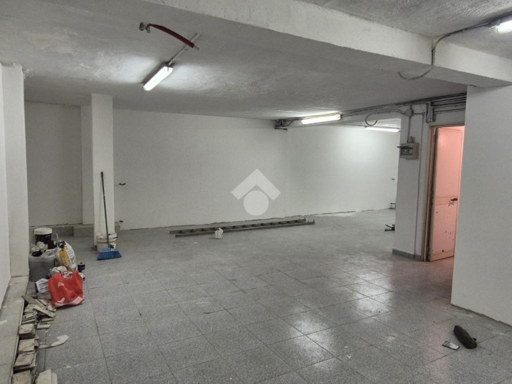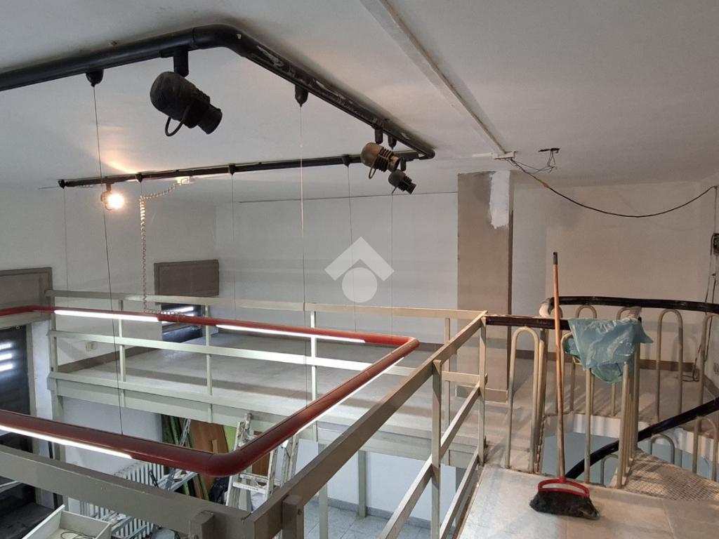 Al piano strada, con una superficie di mq 105, si trova l'ampia zona commerciale con il servizio igienico interno. Tramite scala a chiocciola si raggiungono la zona soppalcata di mq 70 e il magazzino seminterrato di mq 105.