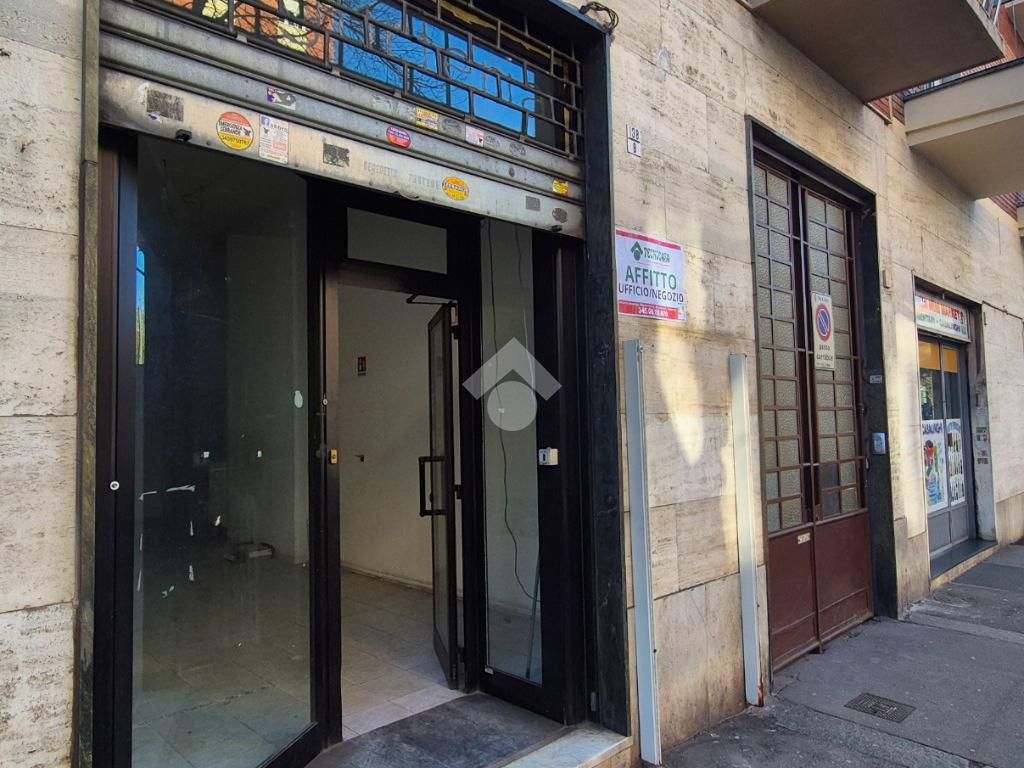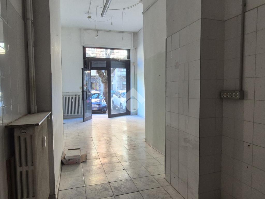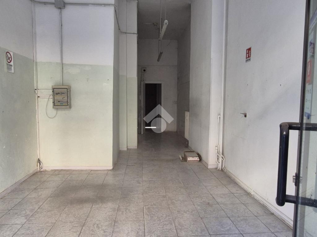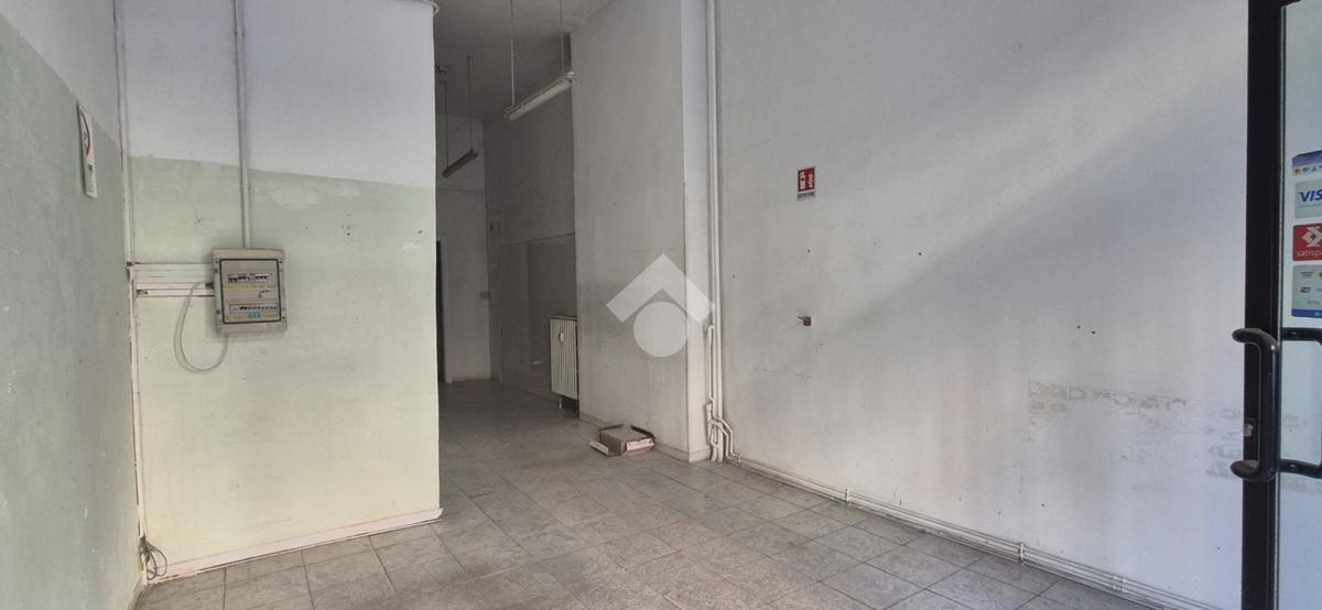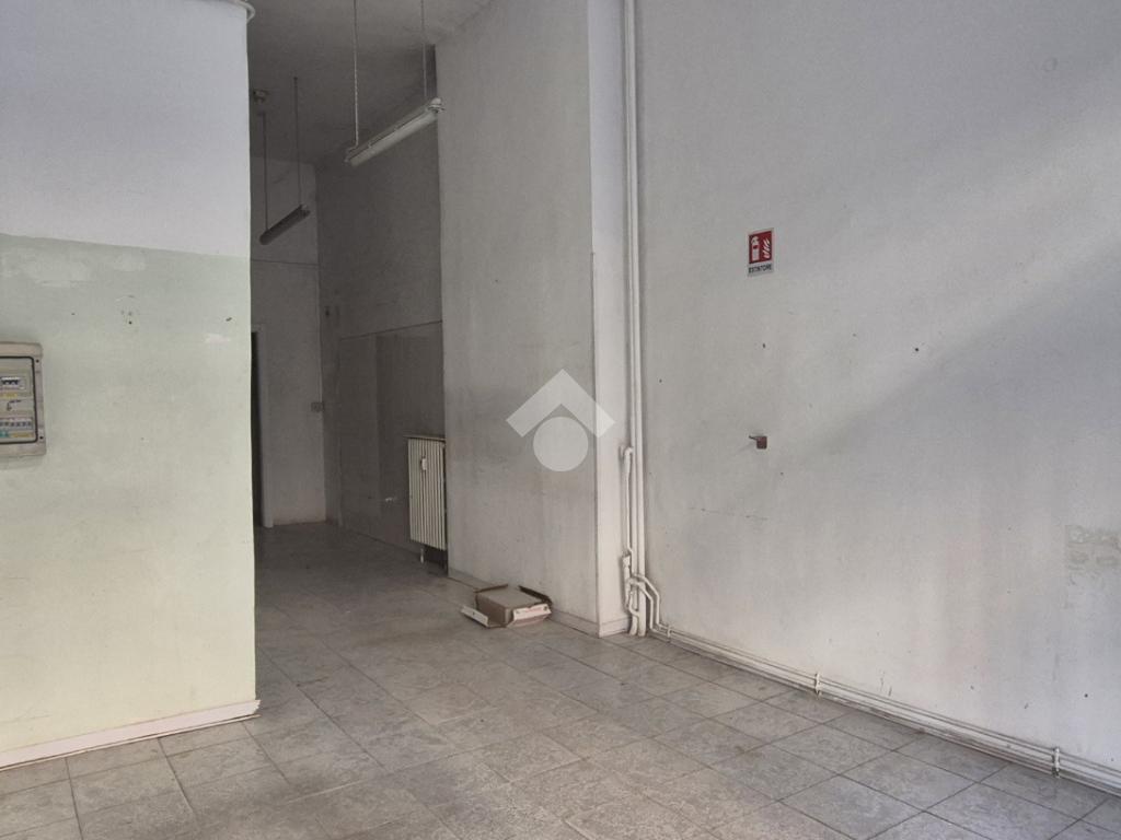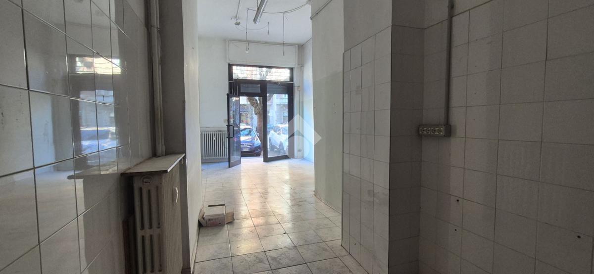 Il locale commerciale si presenta su strada con un'ampia vetrina, dotata di serranda motorizzata, che rende l'immobile luminoso e ben visibile.