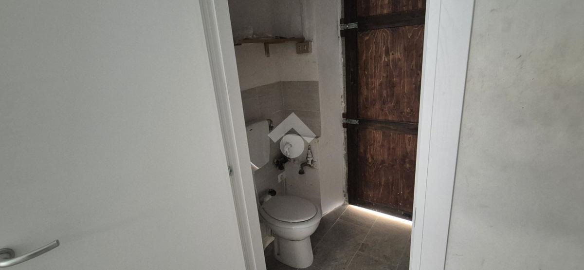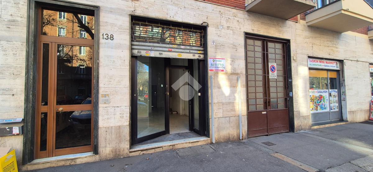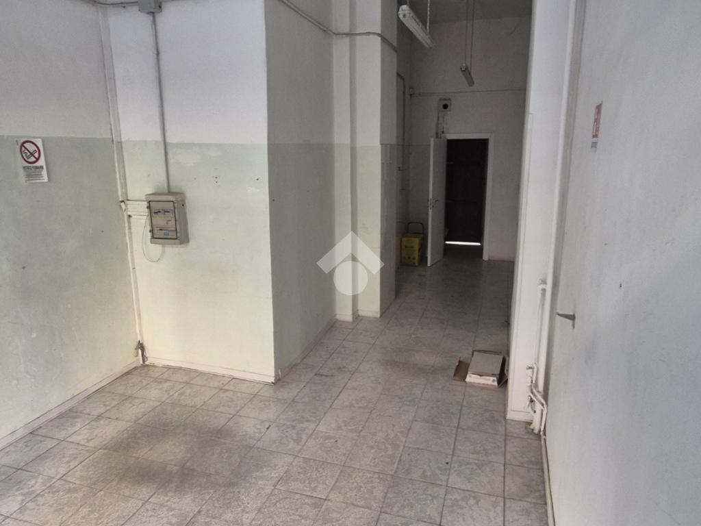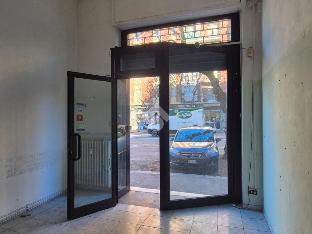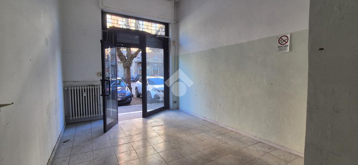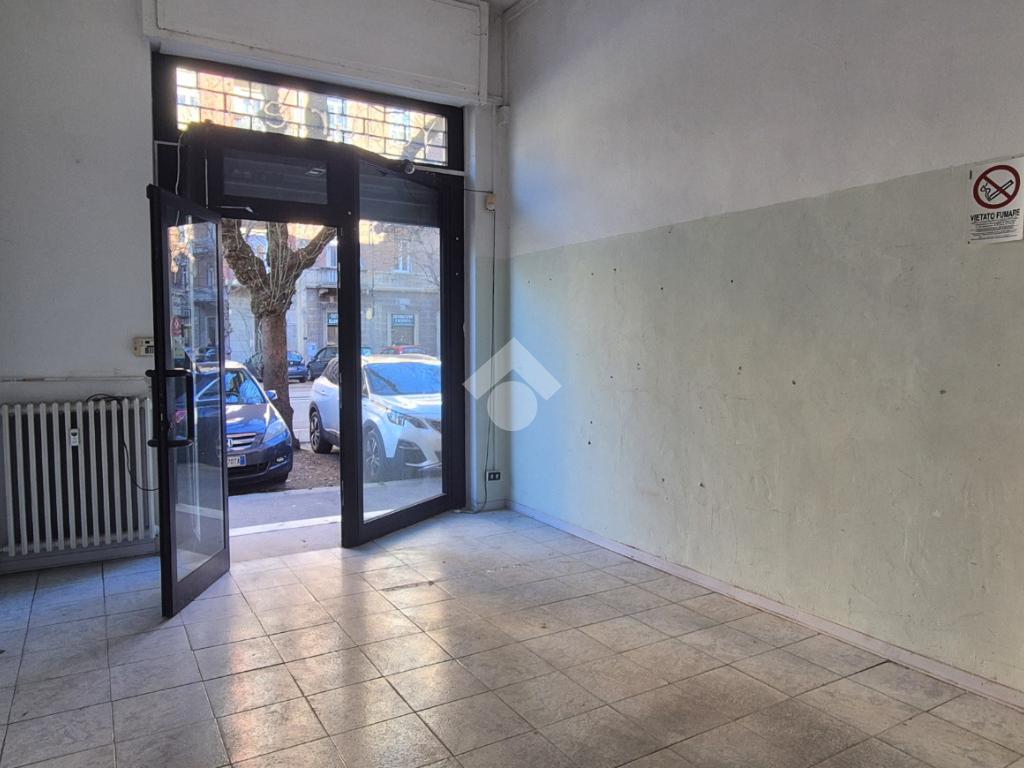 Il locale commerciale si presenta su strada con un'ampia vetrina, dotata di serranda motorizzata, che rende l'immobile luminoso e ben visibile.