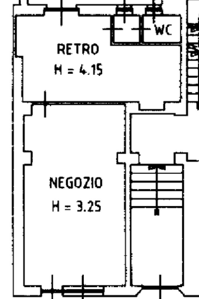 Il locale commerciale si presenta su strada con una vetrina e si compone di zona fronte, retro con servizio igienico interno dotato di antibagno e accesso al cortile condominiale.