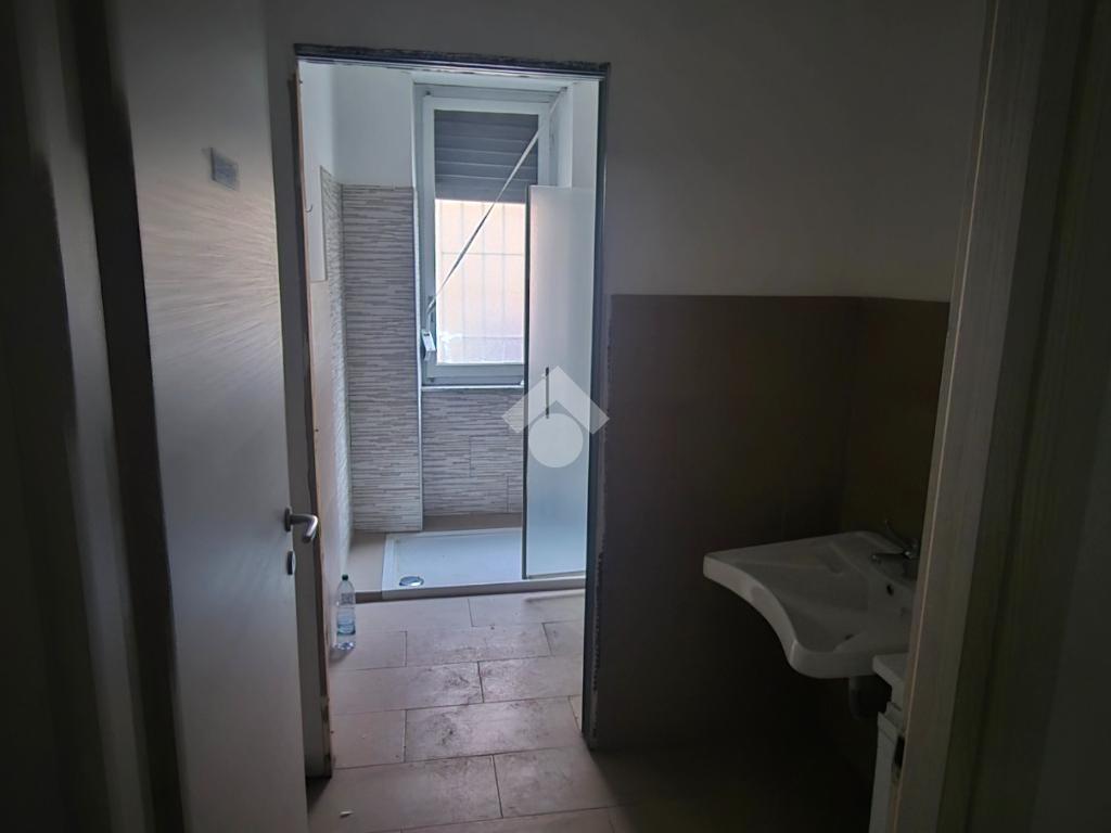 Il locale ha una superficie di mq 55 e si sviluppa, con una vetrina su strada dotata di serranda motorizzata, in un fronte retro con servizio igienico interno con antibagno e secondo ingresso da cortile condominiale.